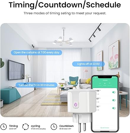uya Smart Home WiFi Socket Plug 16A Smart Socket Plug Adapter Smart Life App Voptor Control Power Monitor WiFi Outlet Easy Setup and Use (Size : W, Color : 1PC